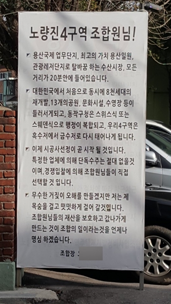 [¾ÆÀ¯°æÁ¦=Á¶Çö¿ì ±âÀÚ] ¼¿ï µ¿ÀÛ±¸ ³ë·®Áø4±¸¿ª(Àç°³¹ß)ÀÌ ½Ã°øÀÚ ¼±Á¤À» ¾ÕµÎ°í ºÒȸ¦ ÀÏÀ¸Å°°í ÀÖ¾î À̸ñÀÌ ÁýÁߵȴÙ.