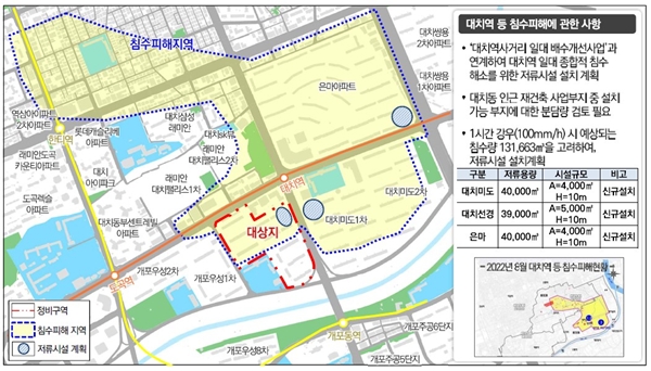 ½Ã´Â ÃÖ±Ù ¼¿ï¤ý¼öµµ±Ç Áö¿ª ½Ã°£´ç 100mm¸¦ ³Ñ´Â Æø¿ì·Î ħ¼ö ÇÇÇØ°¡ ¹Ýº¹µÊ¿¡ µû¶ó »çÈÄ º¹±¸°¡ ¾Æ´Ñ ¿¹¹æ Áß½ÉÀÇ µµ½Ã ¾ÈÀü ÀÎÇÁ¶ó ±¸ÃàÀÌ ÇÊ¿äÇÏ´Ù º¸°í ½Ã¼³ È®Ãæ¿¡ °ø°ø±â¿©¸¦ Ȱ¿ëŰ·Î Çß´Ù°í ¼³¸íÇß´Ù.