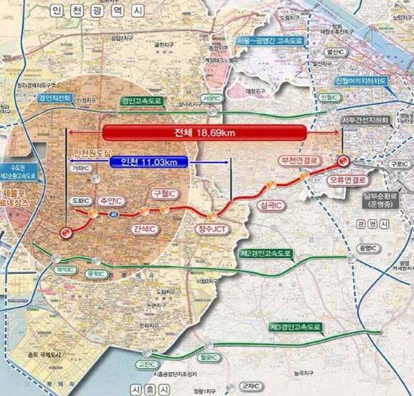 Á¦4°æÀΰí¼Óȵµ·Î´Â Á¦1°æÀΰí¼Óµµ·Î¿Í Á¦2°æÀΰí¼Óµµ·ÎÀÇ ±³Åë È¥ÀâÀ» ¿ÏÈÇÏ°í ½Å±Ô µ¿¼Ãà °£¼±µµ·Î¸ÁÀ» ±¸ÃàÇÏ´Â ÇÙ½É »ç¾÷ÀÌ´Ù. ÀÎõ ¹ÌÃßȦ±¸ ¿ëÇöµ¿(ÀÎõ´ë·Î)¿¡¼ Àå¼öIC¿Í ºÎõÀ» °ÅÃÄ ¼¿ï ±¸·Î±¸ ¿À·ùµ¿(¿À·ùIC)±îÁö ¿¬°áµÇ´Â ÃÑ¿¬Àå 18.69§°, ¿Õº¹ 4~6Â÷·ÎÀÇ ¼ÒÇüÂ÷ Àü¿ëµµ·Î·Î °Ç¼³µÉ ¿¹Á¤ÀÌ´Ù.